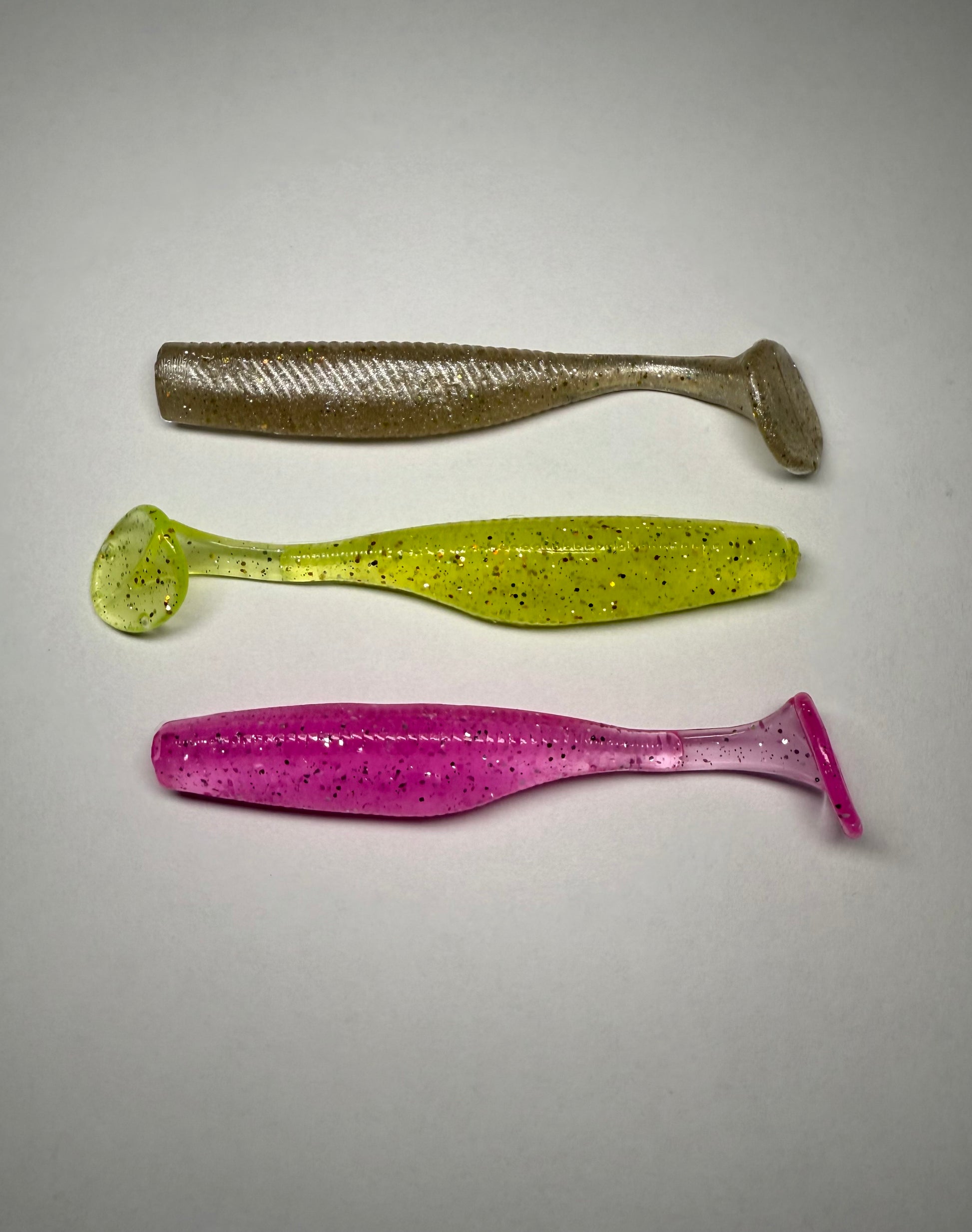 Comes in a pack of 7, our 3.8 Riprap baits have a fast narrow tail kick that will attract fish on the fall as well.